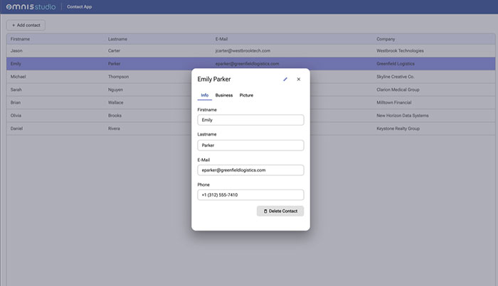 omnis app gallery contacts app